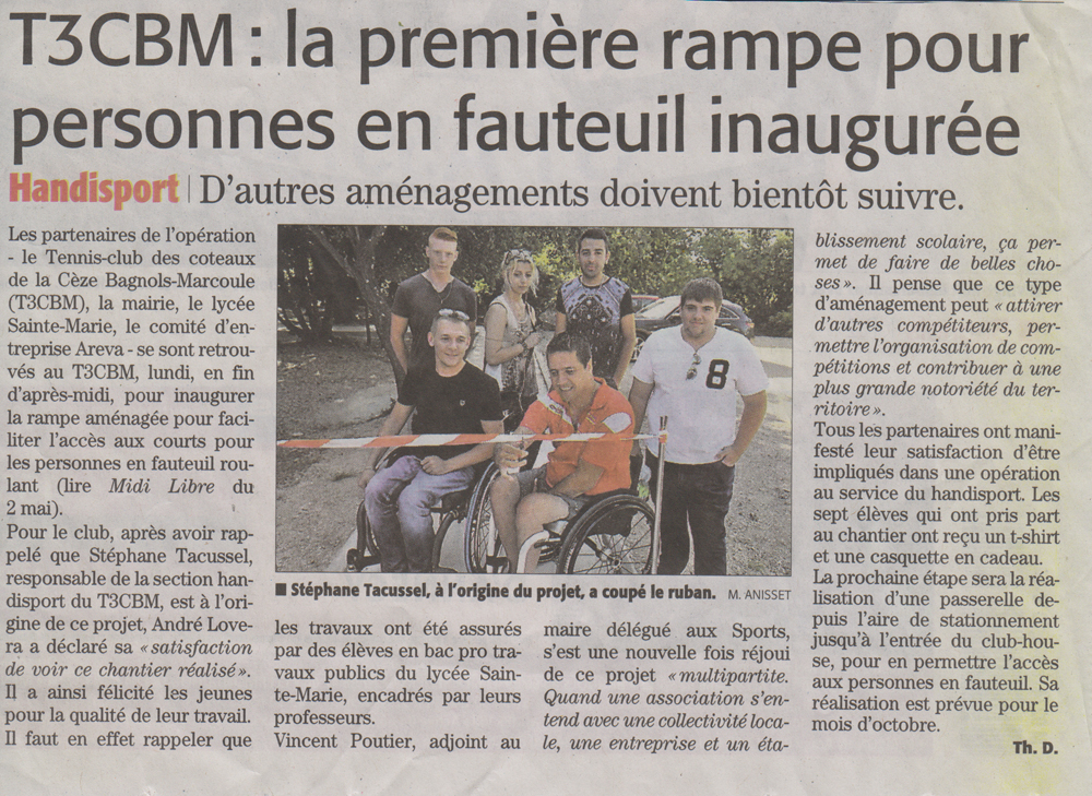 Inauguration du mur d'escalade Sortie Bateaux pour les élèves d'ULIS A vos agendas ! Travaux de la passerelle Sortie 19 Mai 2015 PP1 Accés au ponton pour personnes à mobilité réduites T3CBM la première rampe pour personnes en fauteuil inaugurée A l'occasion de la première journée Valides et handicapés, tous sur le même bateau projet roumanie Chantier école au Maroc 123